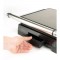 Dessutom är topplattan helt lutbar och anpassar sig till vilken mat-tjocklek som helst, men har också ett stegsystem som gör det möjligt att låsa den i 6 olika lägen för att smälta ost, grilla eller värma utan att röra maten. Non-stick-beläggningen på plattorna erbjuder bekväm och enkel tillagning utöver en snabbare rengöring.