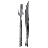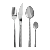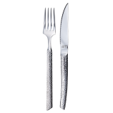 Helt i stål med hamrat mönster.